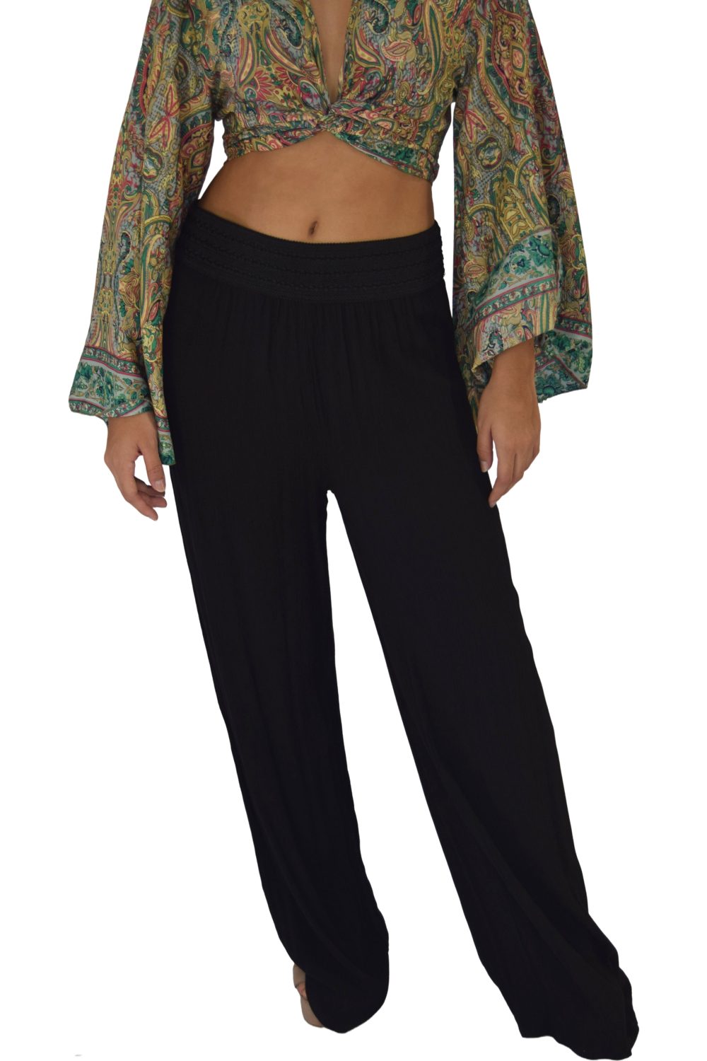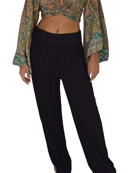 PANTALON LISO CON ENRESORTADO Y BOLSAS