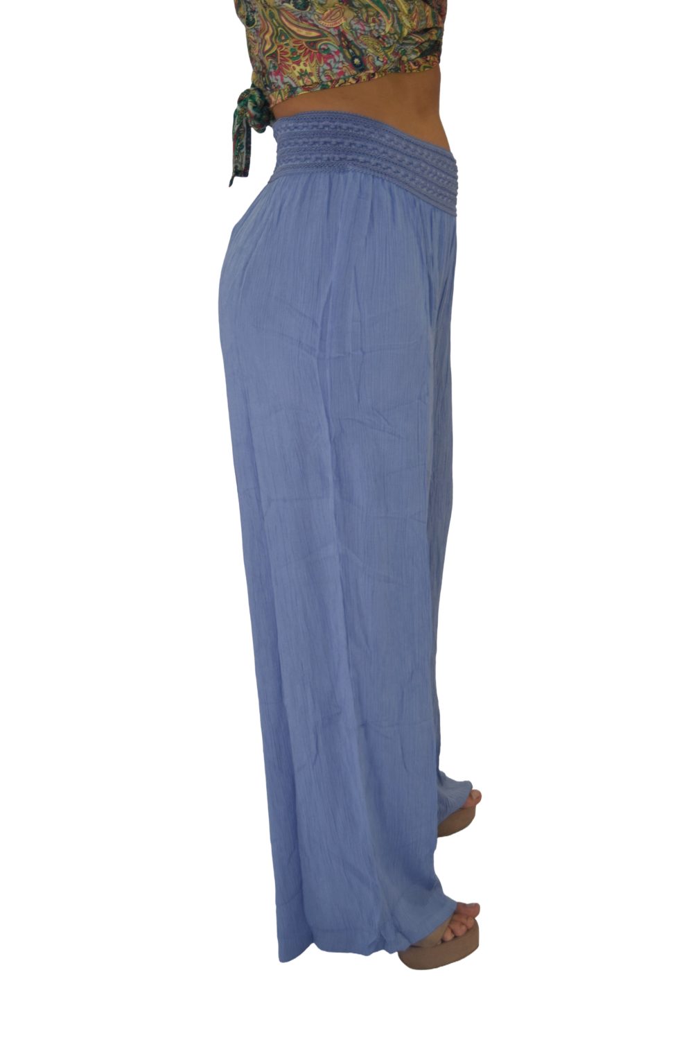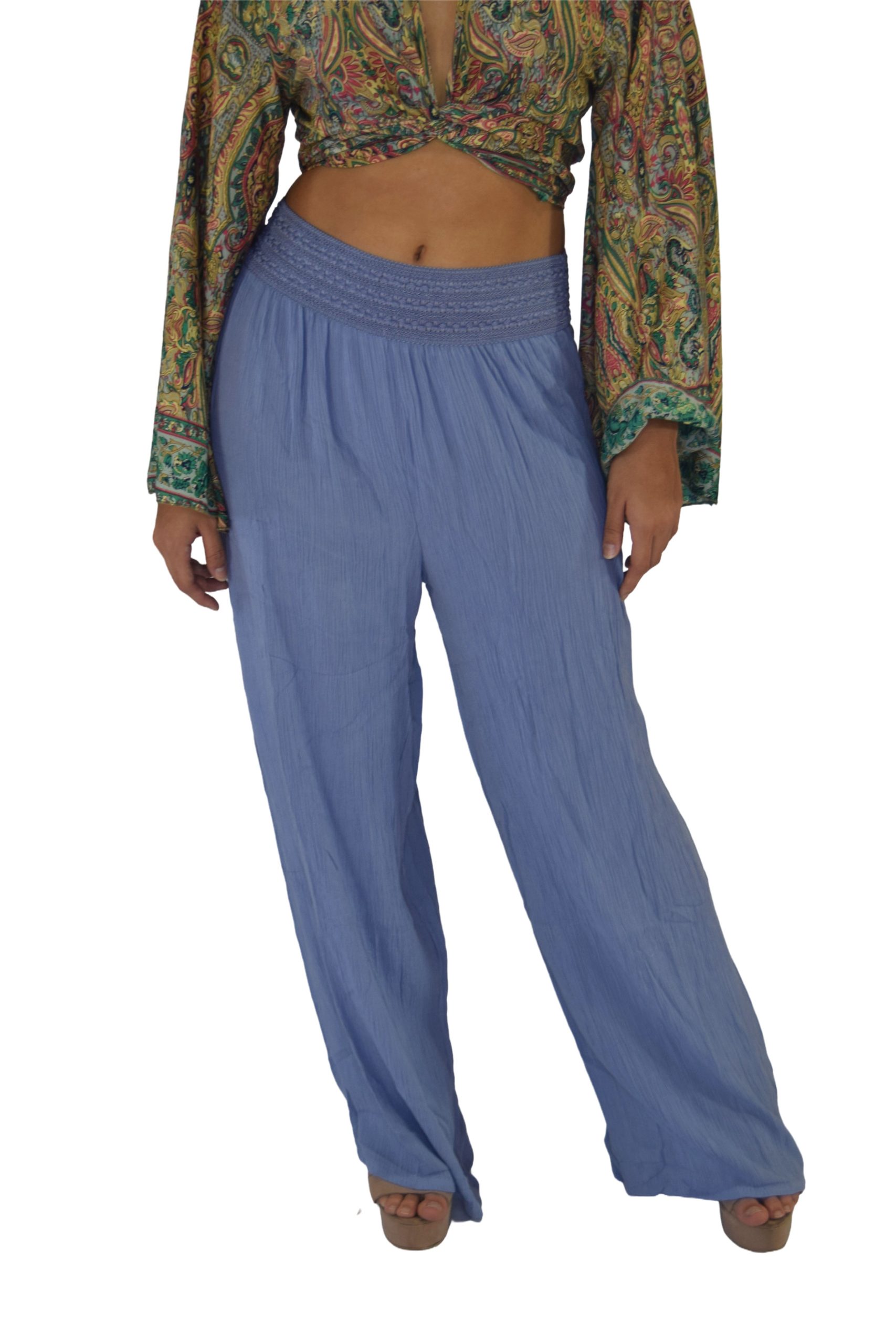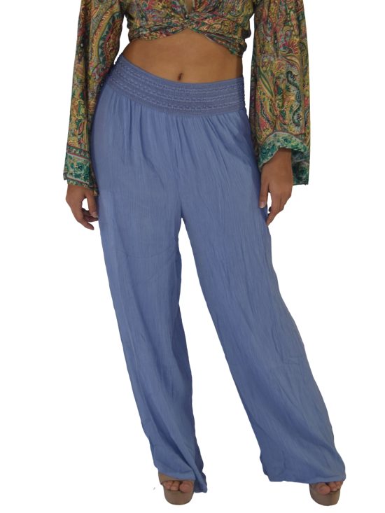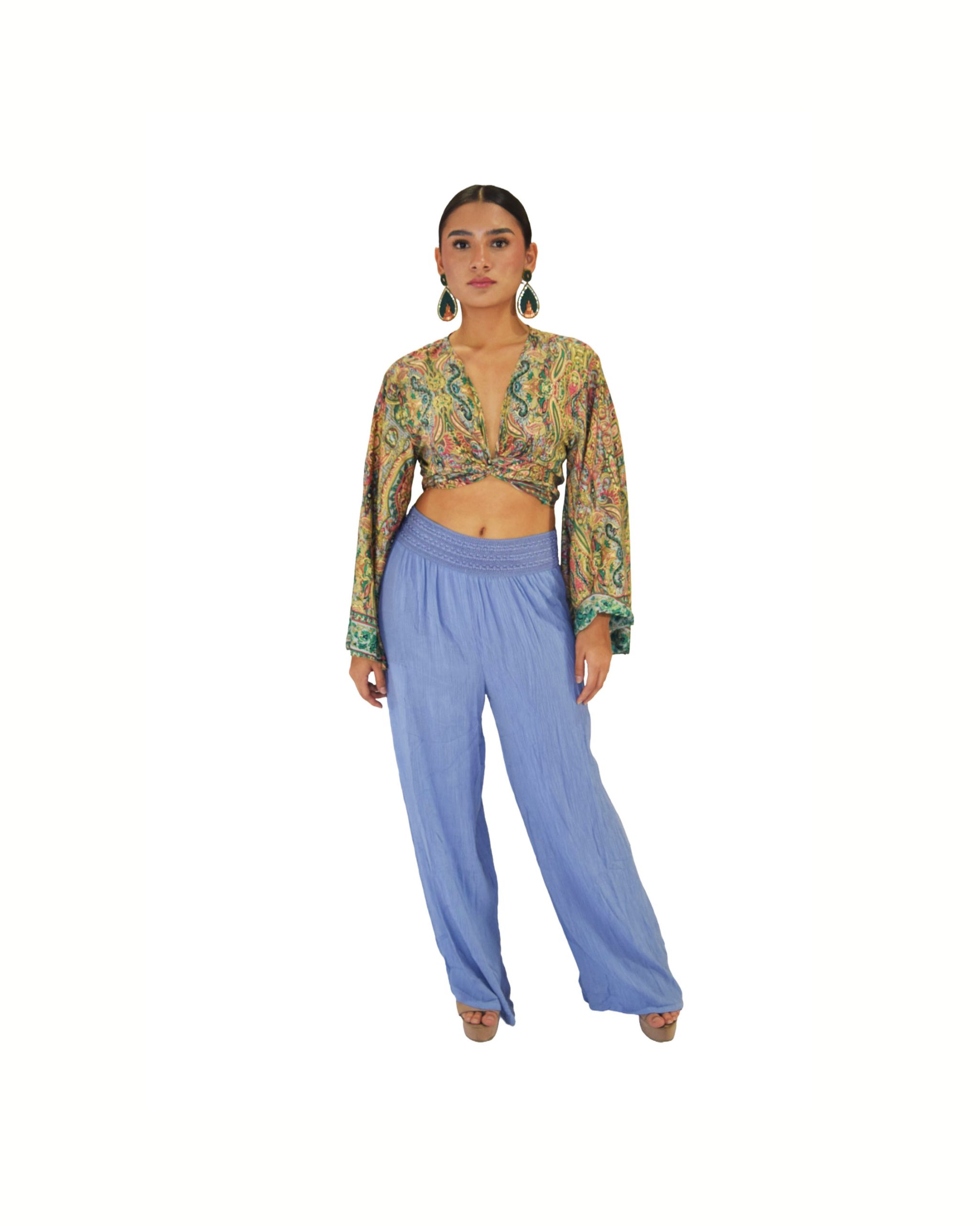 PANTALON PALAZZO PRETINA BORDADO RAYÓN CRUNCH