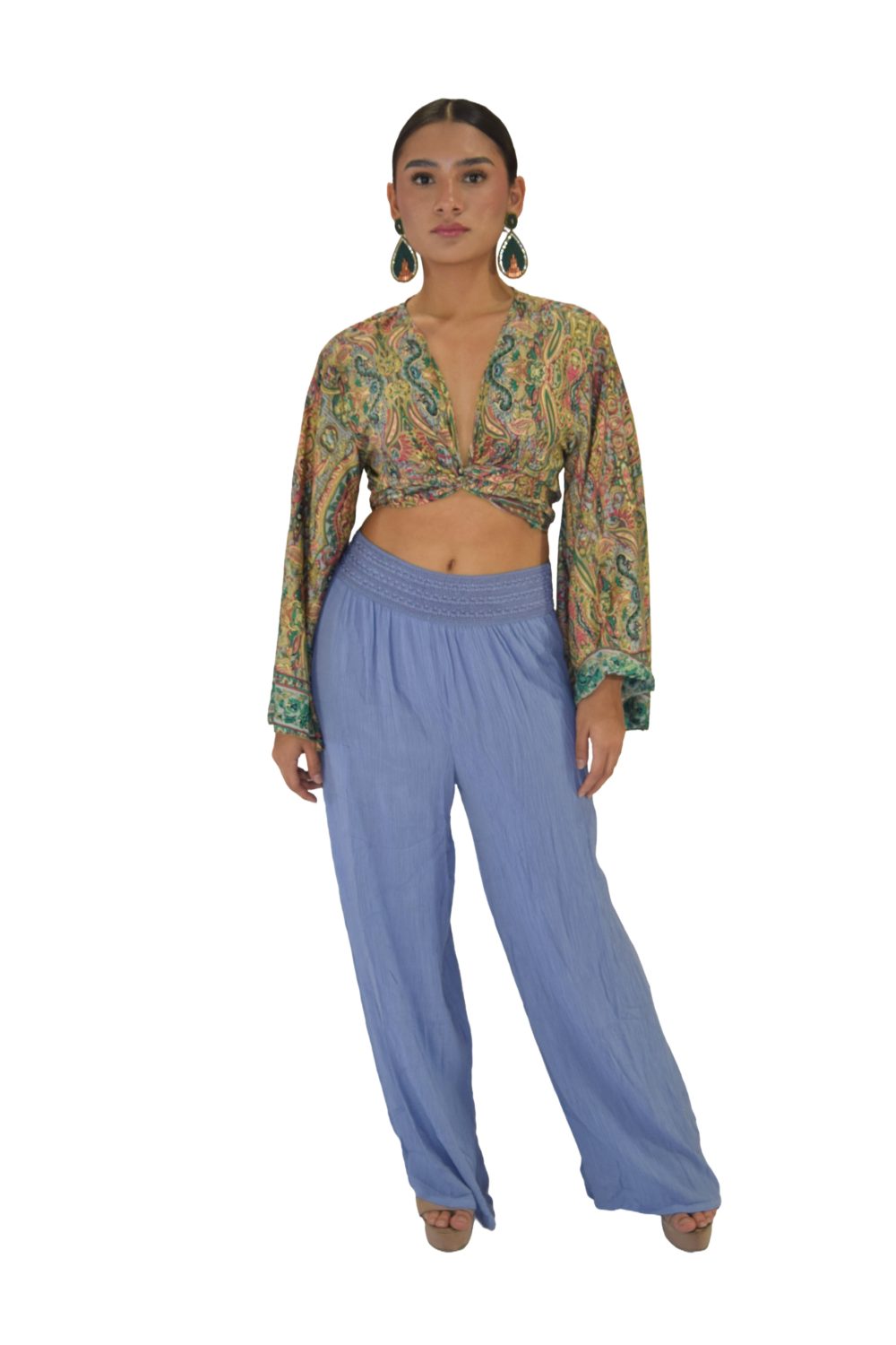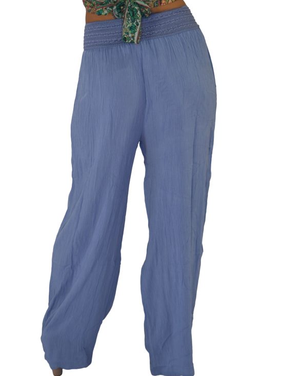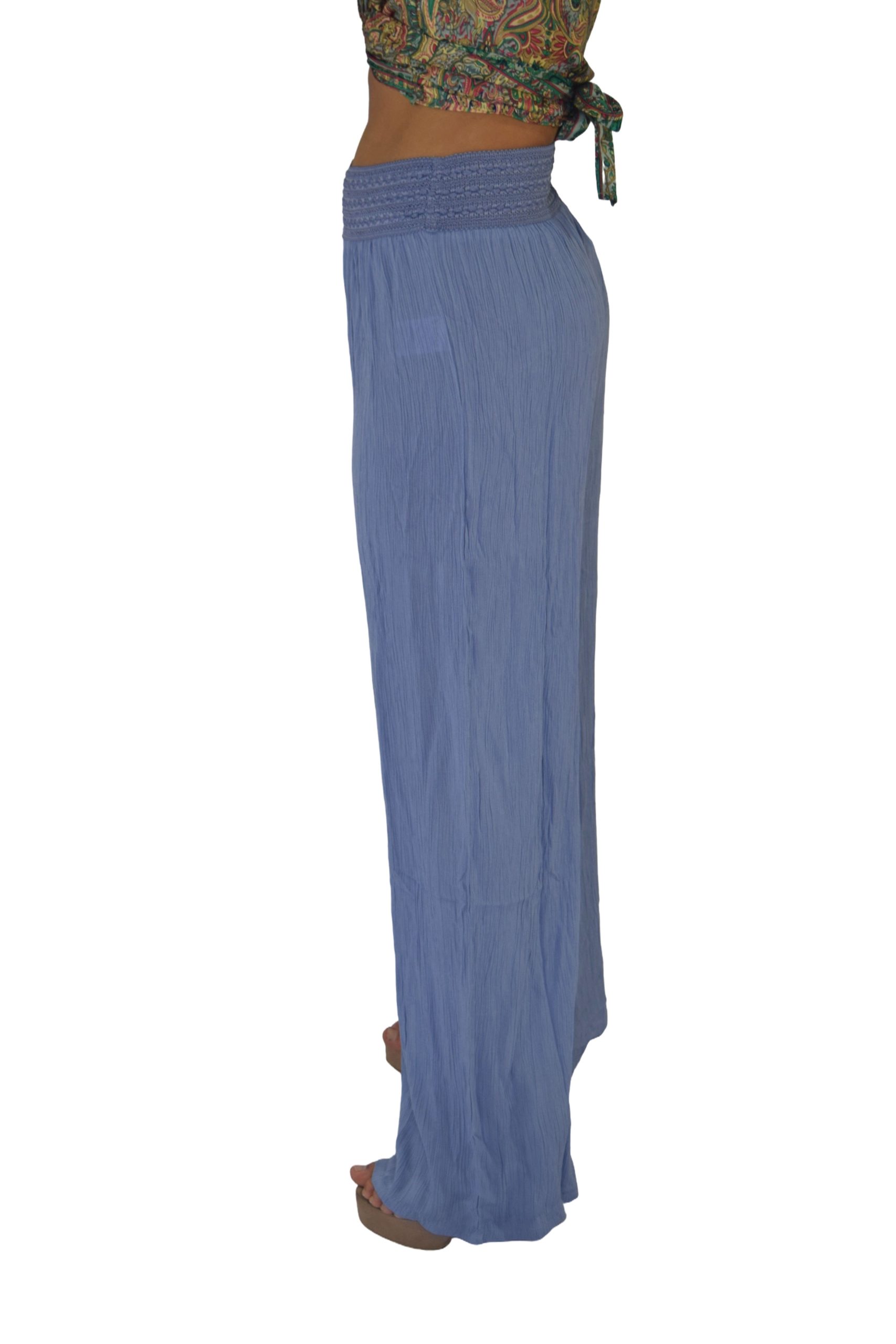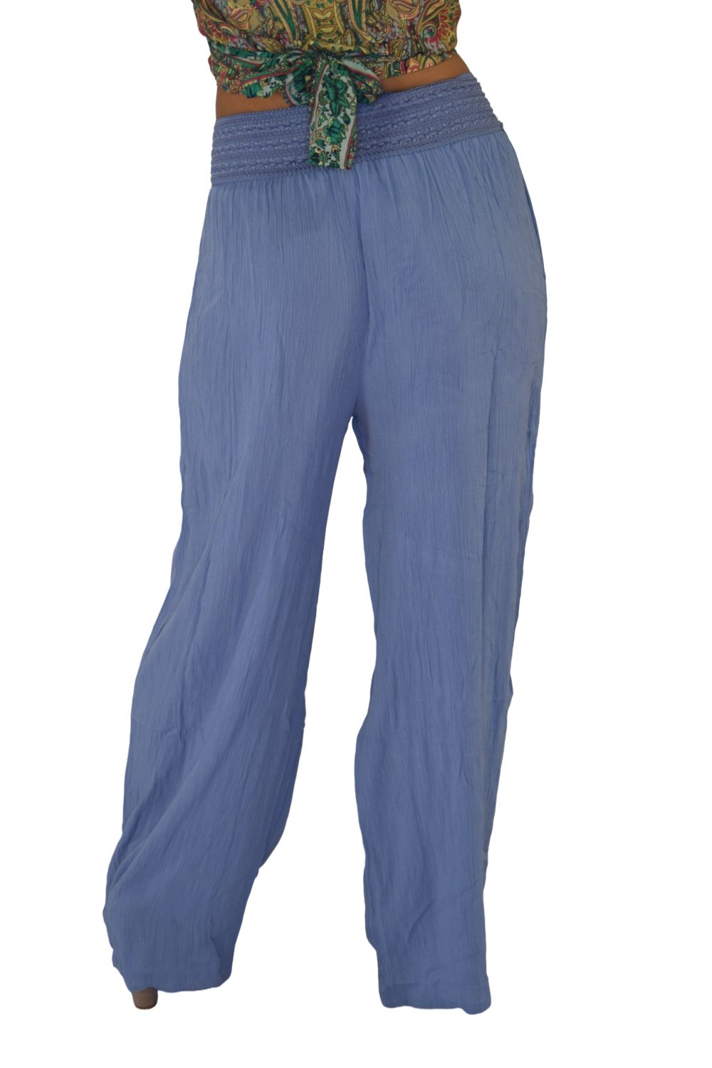 PANTALON PALAZZO PRETINA BORDADO RAYÓN CRUNCH
