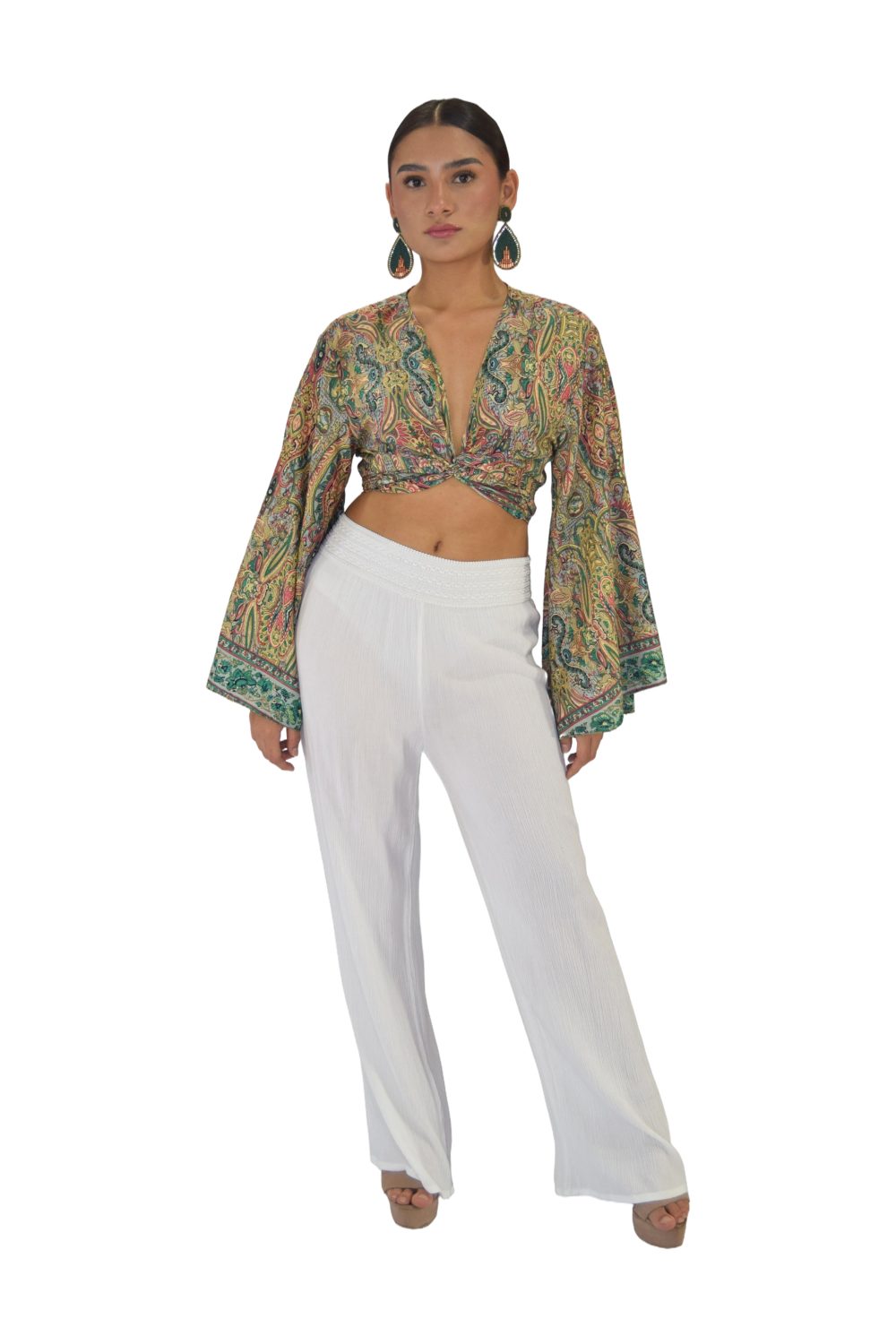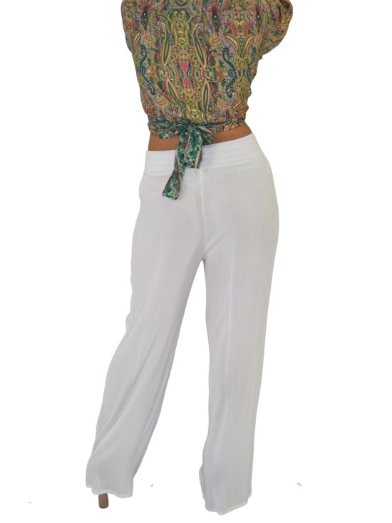 PANTALON PALAZZO PRETINA BORDADO RAYÓN CRUNCH